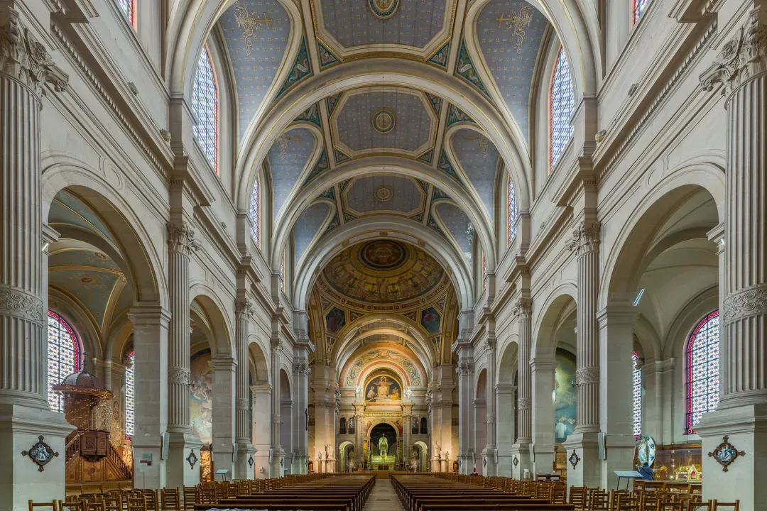 《聖安東尼·德昆澤·文斯》是一座位於巴黎十二區阿隆·勒德·魯林大街六十六號的羅馬天主教堂。法國大革命之前,與十二區相對應的領土屬於第四區聖保羅-聖路易教堂,然後屬於聖瑪格麗特的領土。然而,有兩個機構享有行使“聖靈之癒”的特權:聖安東恩海姆修道院的嘉辰修道女修道院和最初是由路易九世於13世紀創立的Résidence Quinze-Vingts,坐落於不同的地方。大革命期間,修道���被廢除,而修道院於1795年成為聖安東醫院的基礎。新的聖安東·德昆澤·文斯教堂於1791年2月4日成立,最初使用修道院的教堂作為其禮拜場所。該教堂於1798年出售為全國財產,並被摧毀。此後一個世紀,Résidence XV-XX的小教堂聖雷米作為教區教堂,直到1903年完工的新建教堂於1909年11月11日獻給大安德烈。房屋由紐約知名建築師科林·葉爾布萊特設計,其特色為羅馬復興時期的建築風格,借鑑了紐森藝術風格來設計門廊;教堂拱廊上方的琉璃圓頂於1903年由尚且內廷工廠進行構造。教堂正面以磚石砌成,以半圓形門扇以三個眶開口,教堂大廂東西朝向,建築高有塔樓由小屋支撐,由波石覆蓋尖頂,俯瞰勒德·魯林大街。該教堂設有57號交叉街的次要通道。於唱詩聖殿的後臺有一尊聖母持著基督嬰兒的雕像,在教堂內門右側有聖彼得的聖像,並在南側通道附近有一個大型膝枕雕像。該教堂的主管鍵琴是由Aristide Cavaillé-Coll於1894年為私人客戶而建,1907年捐贈該管理工作,該管風琴由Joseph Merklin進行了翻新,並於1909年在合唱隊管風琴上建造。該教堂的交通方式可以通過地鐵的「勒德·羅爾林站」(線),以及「巴士底」,「里昂車站」(線),以及「路20」,「路24」,「路29」,「路57」,「路61」和「路86」等巴士線。 Saint-Antoine des Quinze-Vingts是一座位於巴黎12區阿隆·勒德·魯林大街66號的羅馬天主教堂,此前原屬於第四區聖保羅-聖路易教堂。法國大革命期間,聖安東恩海姆修道院和原路易九世於13世紀創立的Résidence Quinze-Vingts兩個機構被廢除,新的聖安東·德昆澤·文斯教堂於1791年2月4日成立,此後一個世紀,Résidence XV-XX的小教堂聖雷米作為教區教堂,直到1903年完工的新建教堂於1909年11月11日獻給大安德烈。教堂的建設及施工歷史可追溯至1898年3月,1902年2月21日通過行政長驛裁決,教堂將屬於巴黎市的財產。1902年6月17日,“本世紀第一座教堂”由聖彼得-德-蒙特魯日的建築師Émile Vaudremer及其學生Lucien Roy設計的首塊石頭被放置;1903年12月28日,完成宗教建築;1910年1月,發生1910追求巴黎洪水;1911年11月11日,正式落成獻給安德魯大帝的禮拜場,俯瞰勒德·魯林大街,教堂一開始便來之不易。教堂以磚石砌成羅馬復興時期的建築風格,以紐森藝術風格來設計門廊;教堂拱廊上方的琉璃圓頂於1903年由尚且內廷工廠進行構造。教堂的正面以磚石砌成,以半圓形門扇以三個眶開口,於唱詩聖殿的後臺有一尊聖母持著基督嬰兒的雕像,在教堂內門右側有聖彼得的聖像,並在南側通道附近有一個大型膝枕雕像。該教堂的主管鍵琴是由Aristide Cavaillé-Coll於1894年為私人客戶而建,1907年捐贈該管理工作,該管風琴由Joseph Merklin進行了翻新,並於1909年在合唱隊管風琴上建造。該教堂可通過地鐵的「勒德·羅爾林站」,「巴士底」,「里昂車站」,以及巴士線20、24、29、57、61和86等車站前往。