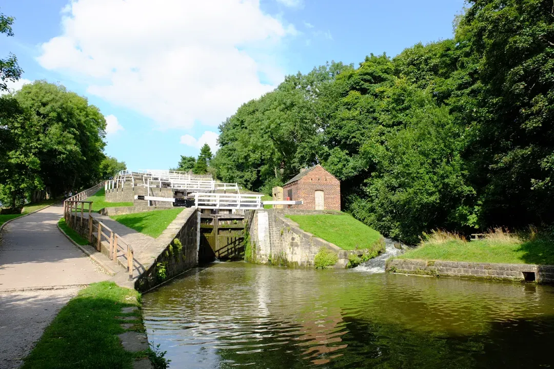 五個起伏水閘(Bingley Five-Rise Locks)位於呂宋與利物浦運河的Bingley,如其名稱所示,小船經此水閘時,可以採取五層次的升降,整個水閘由五個閘門連接而成,每間閘門寬約,由兩片從運河兩側開啟的小閘門合併而成,上下水位平衡時,閘門又可以簡單的開啟,整個橋樑的斜坡率約為1:5。 五起伏水閘被列為一級歷史建築,於1774年3月21日開啟,當時,聚集了由30,000人的觀眾慶祝開通,此水閘也因為其歷史價值成為當地的旅遊景點,每當有船隻經過時,經常會吸引許多看船者的光顧。五個起伏水閘更於2004、2006進行大規模修繕,在2012年,水閘又改建了由新的英國綠橡木製成的閘門及兩邊的平衡梁,二者總重超過5噸。